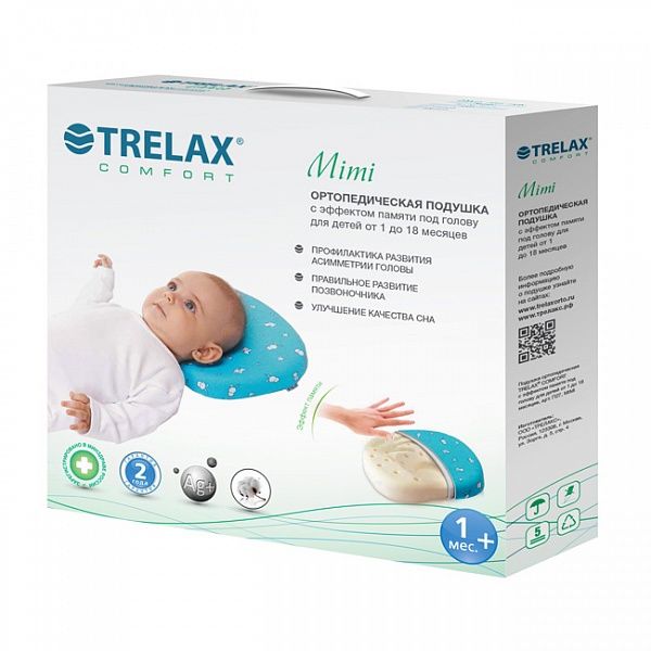 Ортопедическая подушка под голову TRELAX MIMI П27 с эффектом памяти предназначена для детей от 1 до 18 месяцев.